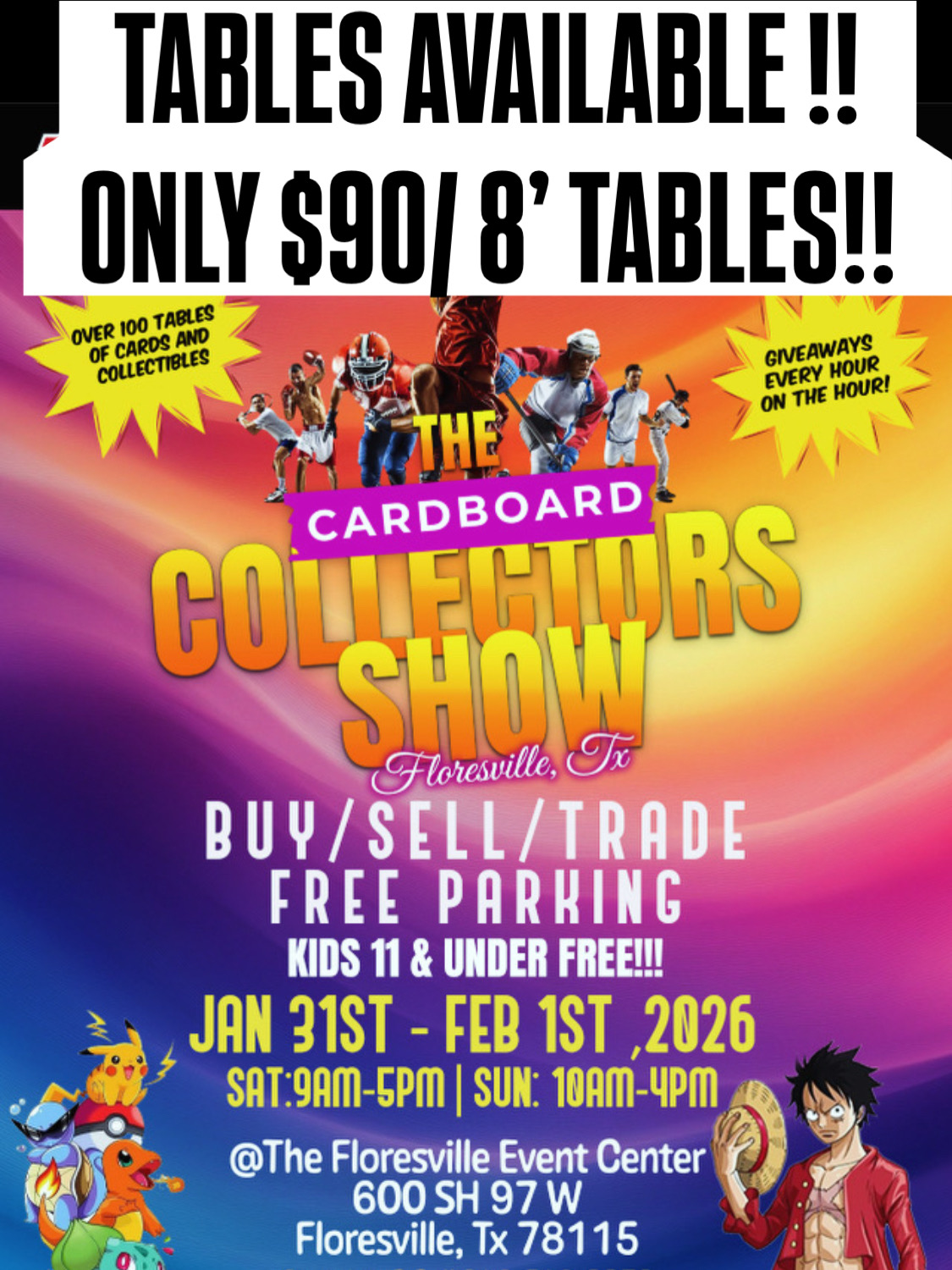 The Cardboard Collectors Show brings together top vendors, collectors, and hobby businesses for high-quality trading card events. Reserve your table, connect with customers, and be part of a growing community of passionate collectors.